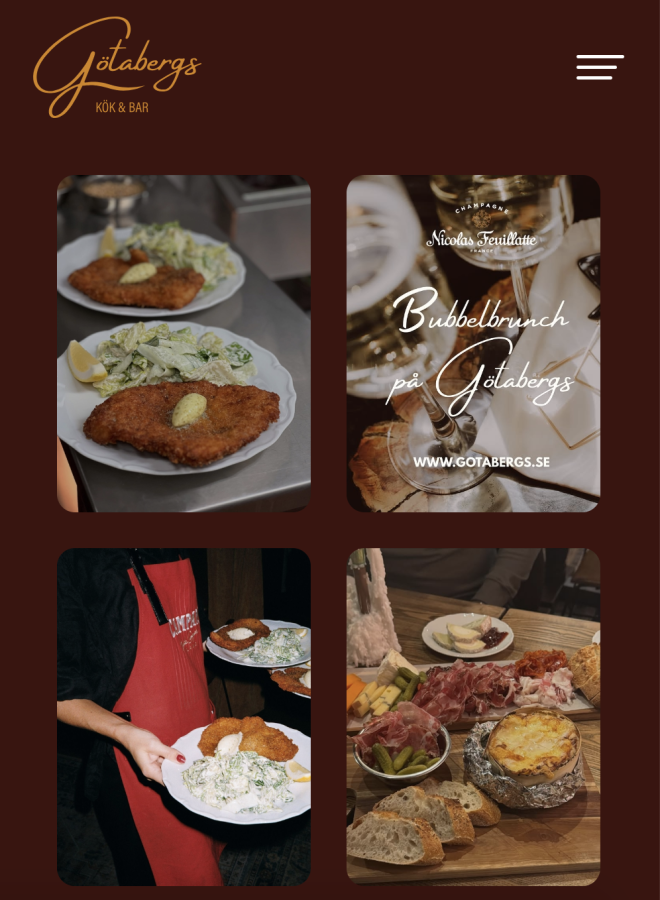 Götabergs Kök & Bar kontaktade oss med behovet av en ny webbsida som avspeglar den kreativa atmosfären, framhäver det unika erbjudandet och som ökar synligheten.